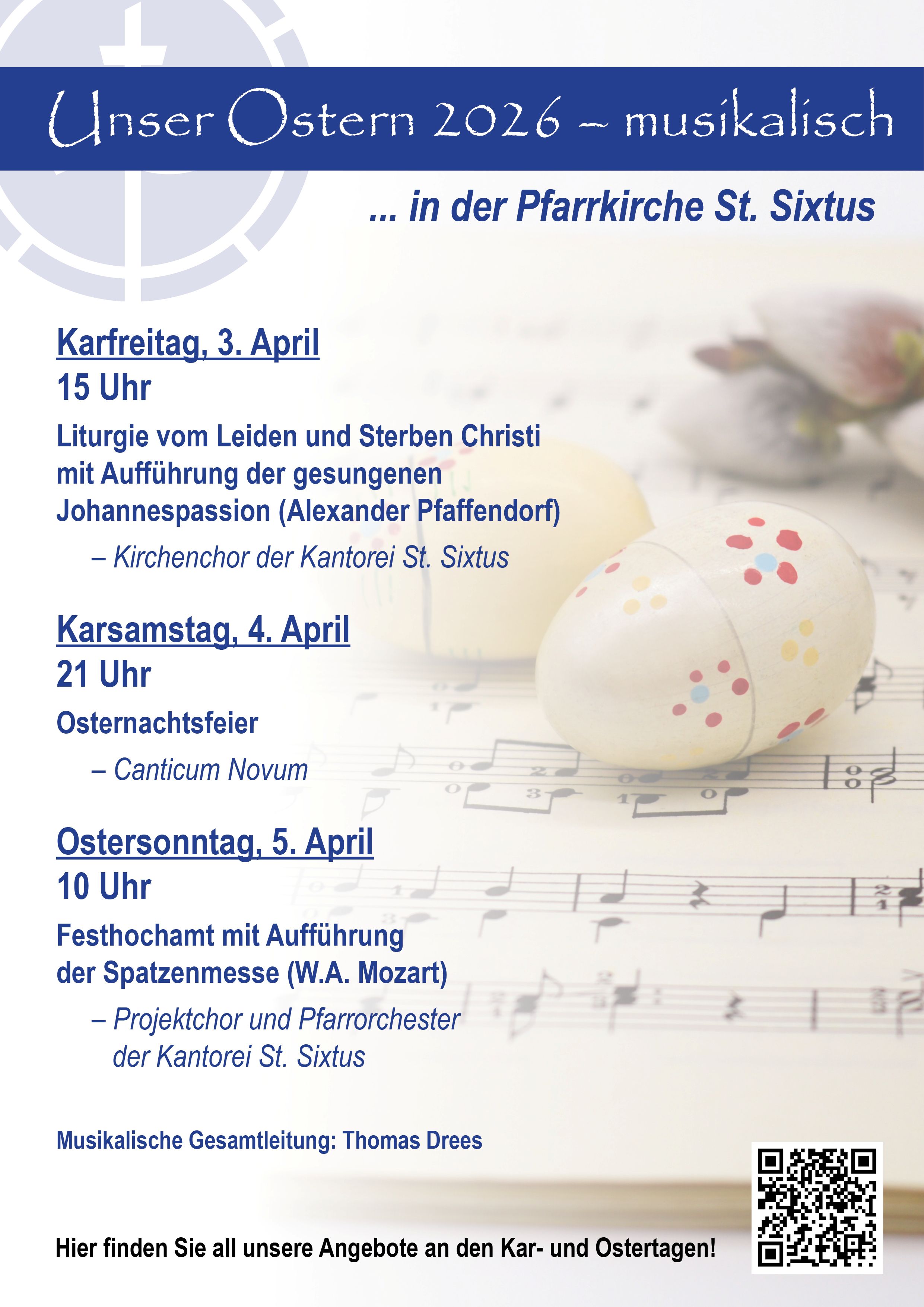 Die Kantorei St. Sixtus bietet in den Kar- und Ostertagen in der Sixtuskirche wieder ein vielfältiges Programm an: