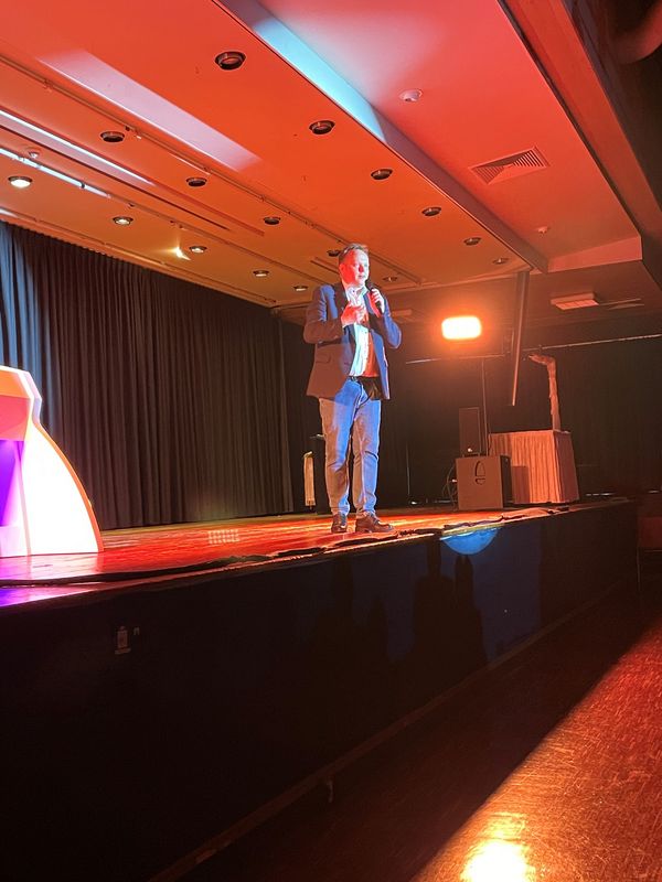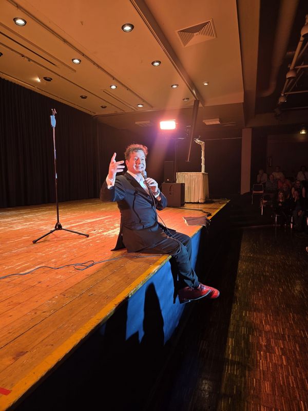 Was für ein Feuerwerk! Stehende Ovationen und minutenlanger Applaus beendeten einen Abend in der Aula des Schulzentrums, wie er – in mehrfacher Hinsicht – so noch nicht dagewesen war. Eine tolle Mischung aus knackiger Comedy (mit großem Stand-up-Anteil), großartiger Stimmenimitation, schmissiger Musik und einer Sandmalkunst-Darbietung, die gleichermaßen berührte wie faszinierte, sorgte für riesige Begeisterung im ausverkauften Saal. Und auch auf andere Weise wird dieser Abend noch positiv nachhallen: Der gesamte Erlös geht an die Initiative „Haltern hilft – Sudan“.