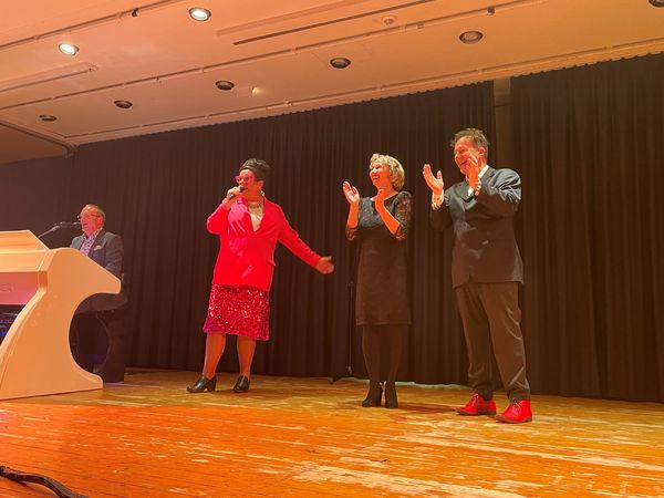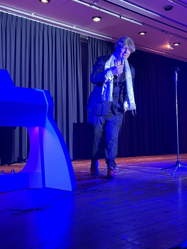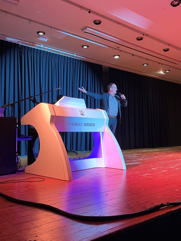 Nun folgte ein musikalisches Highlight: Pianist Thomas Weber nahm Platz an der weißen Böhm-Orgel und unterhielt den Saal aufs Beste mit ohrwurmträchtigen Songs („Schau doch mal herein auf einen Kaffee“ zur Musik von „Stumblin‘ in“, „Sempre, Sempre“), aber auch ruhigeren Stücken – denn: „Es ist doch so – je älter man wird, desto mehr merkt man, dass es einem doch eigentlich ganz gut geht. Und dass man auch einfach mal dankbar sein kann.“ Ein Intermezzo, das perfekt zu diesem außergewöhnlichen Abend passte.