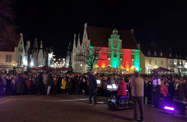 Der Halterner "Feierabendmarkt" ist eine Institution - und die Kantorei St. Sixtus ist es auch. Entsprechend groß war die Begeisterung, als Thomas Drees und seine Mit-Musiker am 18. Dezember beim letzten Feierabendmarkt für dieses Jahr ein Rudelsingen auf dem Marktplatz anstimmten! Hunderte Besucher ließen als spontan zusammengekommener Chor traditionelle Weihnachtslieder erklingen und sich natürlich auch von Rolf Zuckowskis "Weihnachtsbäckerei" mitreißen.