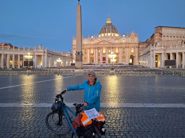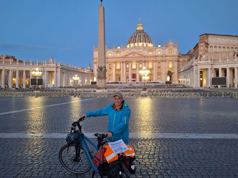 Am 12. September machte sich Matthias Garsche auf eine ganz besondere Pilgertour: per Fahrrad von Haltern bis nach Rom, rund 1700 Kilometer. Das Ganze in Form einer Spendenfahrt: Sponsoren konnten jeden erradelten Kilometer mit einem selbstgewählten Betrag unterstützen, der Erlös ging zu 100 Prozent an „Haltern hilft – Sudan“. Vier Wochen sollte Matthias Garsche unterwegs sein, teils begleitet von Freunden. In der Heiligen Stadt traf er schließlich auf die Halterner Rom-Wallfahrer, die – etwas bequemer – mit Bus und Bahn angereist waren. Am Ende kamen über 17.500 Euro an „Kilometergeld“ zusammen – Chapeau!