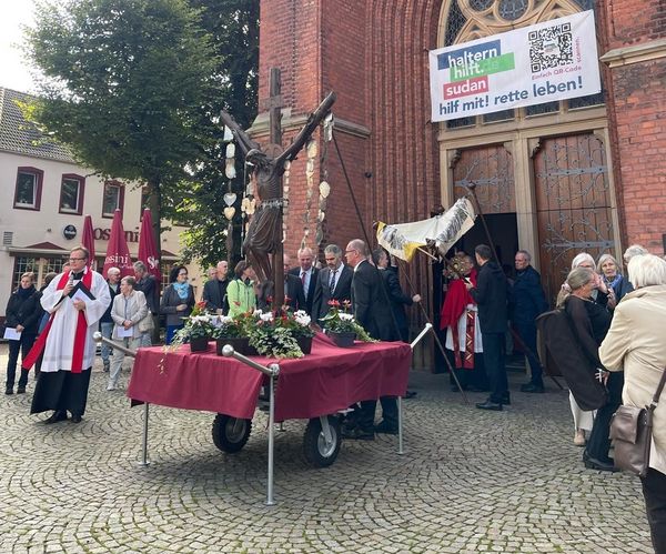 Der Dienstag nach Pfingsten sollte dann zum Gründungstag der Initiative "Haltern hilft - Sudan" werden. Bereits seit der Osternacht, in der er über die Geschichte einer sudanesischen Frau gepredigt hatte, trug sich Michael Ostholthoff mit dem Gedanken der Hilfe für das ostafrikanische Land, in dem durch Krieg eine der größten Hungerkatastrophen herrscht. An diesem Abend fand sich eine Gruppe aus verschiedenen Organisationen und Verbänden, aber auch etliche Einzelpersonen zusammen, die in den kommenden Monaten in unzähligen kleinen und größeren Aktionen Spenden für den Sudan sammeln würden. Zur Koordinatorin wurde Gerburgis Sommer ernannt, die bereits unter anderem durch ihre Aktion "Gesichter einer Flucht" für positives Aufsehen gesorgt hatte.