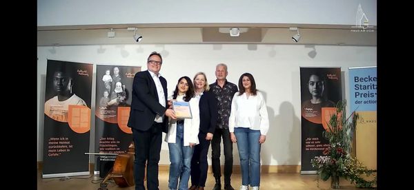 Eine besondere "frohe Botschaft" erreichte uns in der letzten Märzwoche: Michael Ostholthoff hat den Becker-Staritz-Preis für das Engagement der Pfarrei St. Sixtus beim Kirchenasyl gewonnen. Die Auszeichnung wird von der ökumenischen Gruppierung "action 365" ausgeschrieben und wurde in diesem Jahr zum dritten Mal verliehen. Die Preisverleihung fand am 16. Mai in Frankfurt statt (Foto), das Preisgeld von 2500 Euro floss komplett ins Halterner Kirchenasyl.