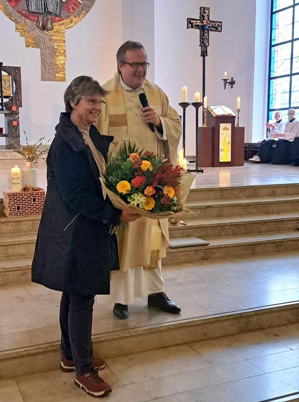 Am 23. November wurde unsere langjährige Lippramsdorfer Küsterin Annerose Rott im Rahmen der Messe in St. Lambertus in den wohlverdienten Ruhestand verabschiedet. Michael Ostholthoff dankte der beliebten Mitarbeiterin, die sei dem 1.1.1998 als Küsterin wirkte, für ihren langjährigen Einsatz. Ihre Nachfolgerin ist Mechthild Lensdorf, mit der Annerose bereits seit Jahren als Team unterwegs ist.