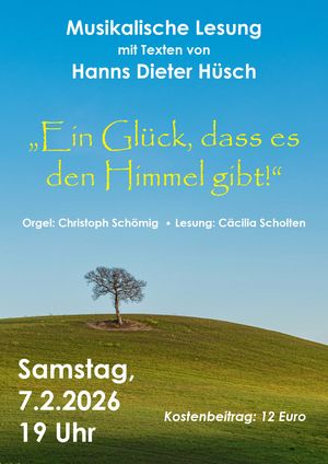 Am Samstag, 7. Februar, um 19 Uhr steht eine musikalische Lesung auf dem Programm des Kultur.Punkts. Cäcilia Scholten liest Werke von Hanns Dieter Hüsch, die passenden Orgelimprovisationen werden von Christoph Schömig gespielt. Eine spannende und unterhaltsame Kombination!