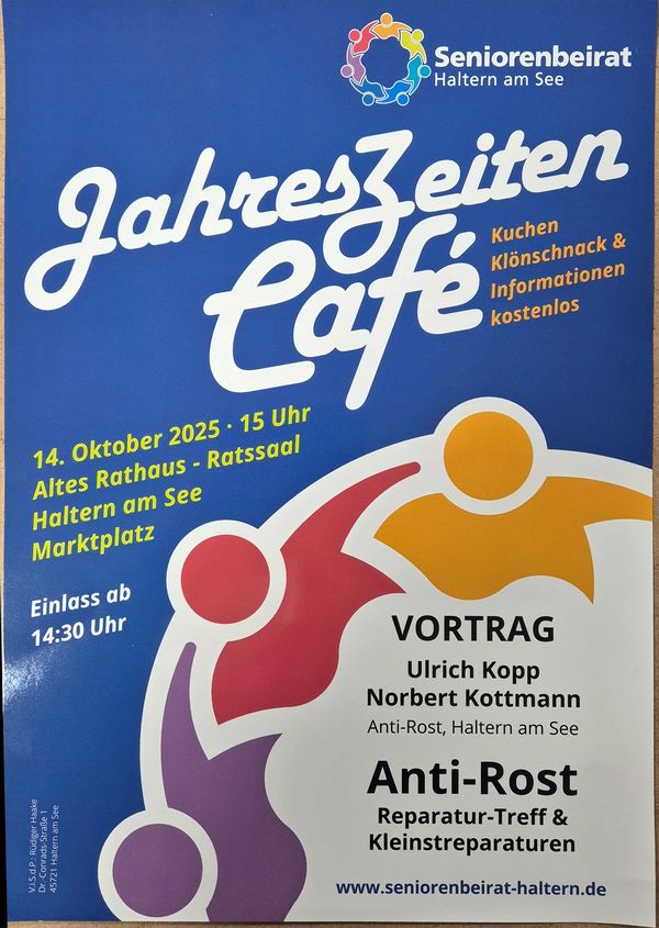 Anti-Rost Kleinstreparaturen und Reparatur-Treff stellen sich am 14.10.2025 beim Jahreszeiten-Café des Seniorenbeirats vor.